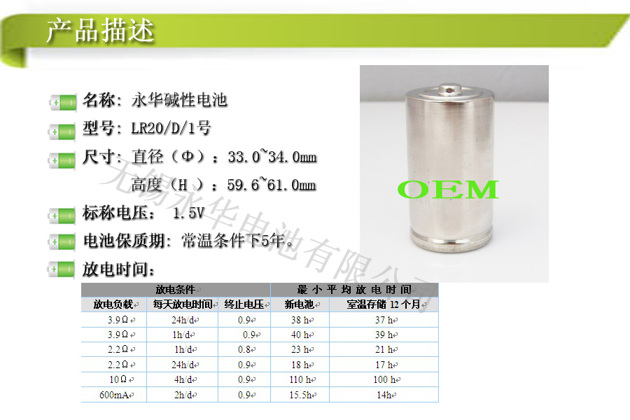 LR20 1號堿性電池
